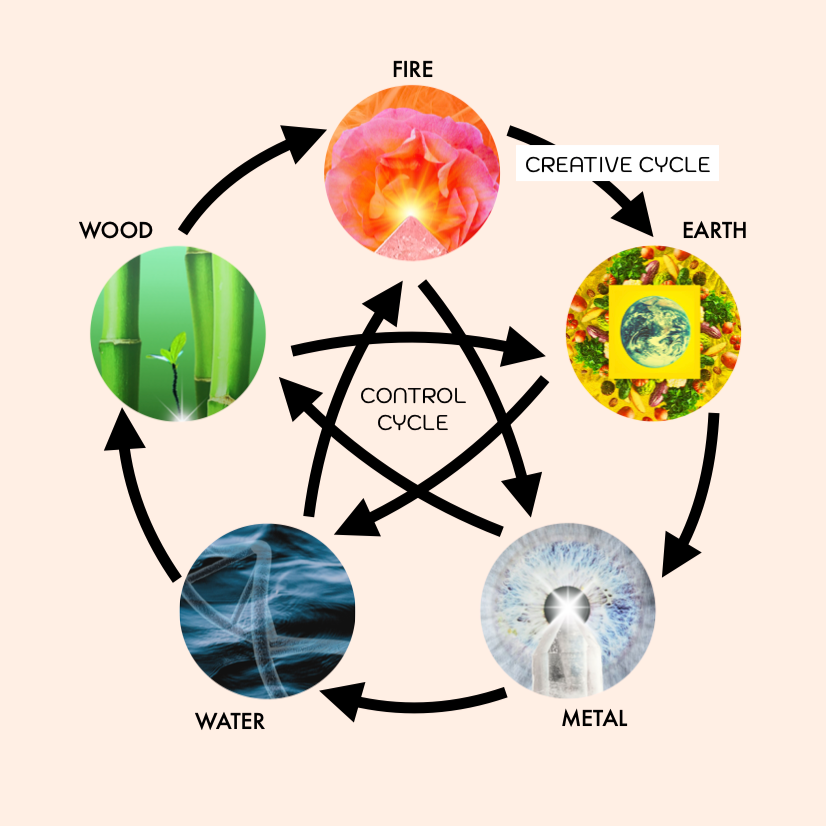 The Five Elements, also known as the Five Phases, Wu Xing (Five Movements), describe a process or system of relationships and patterns that are used in Chinese medicine and Feng Shui. This system was developed sometime between 500 B.C.E. and 200 B.C.E. A long time ago! It’s a tool used to describe and understand patterns, like seasonal changes, the lifecycle, illness, moods and behavior, how a space feels. The pulsating of life—growing and shrinking, creating and destroying, expanding and contracting—and the tension between these opposing forces, is demonstrated by this system. This tension is necessary for movement, life force. But as with anything, too much and it becomes exaggerated. The Five Elements can be used as an aid for finding the spot that either needs to be nourished or subdued, for bringing in balance. When there’s harmony in the cycle, with equal amounts of nourishment and tension, equilibrium is restored. The elements are Wood, Fire, Earth, Metal, and Water.